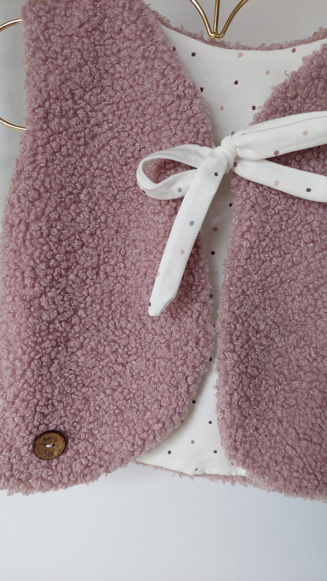 Maille bouclette souple et jersey intérieur pour ce petit gilet plein de douceur