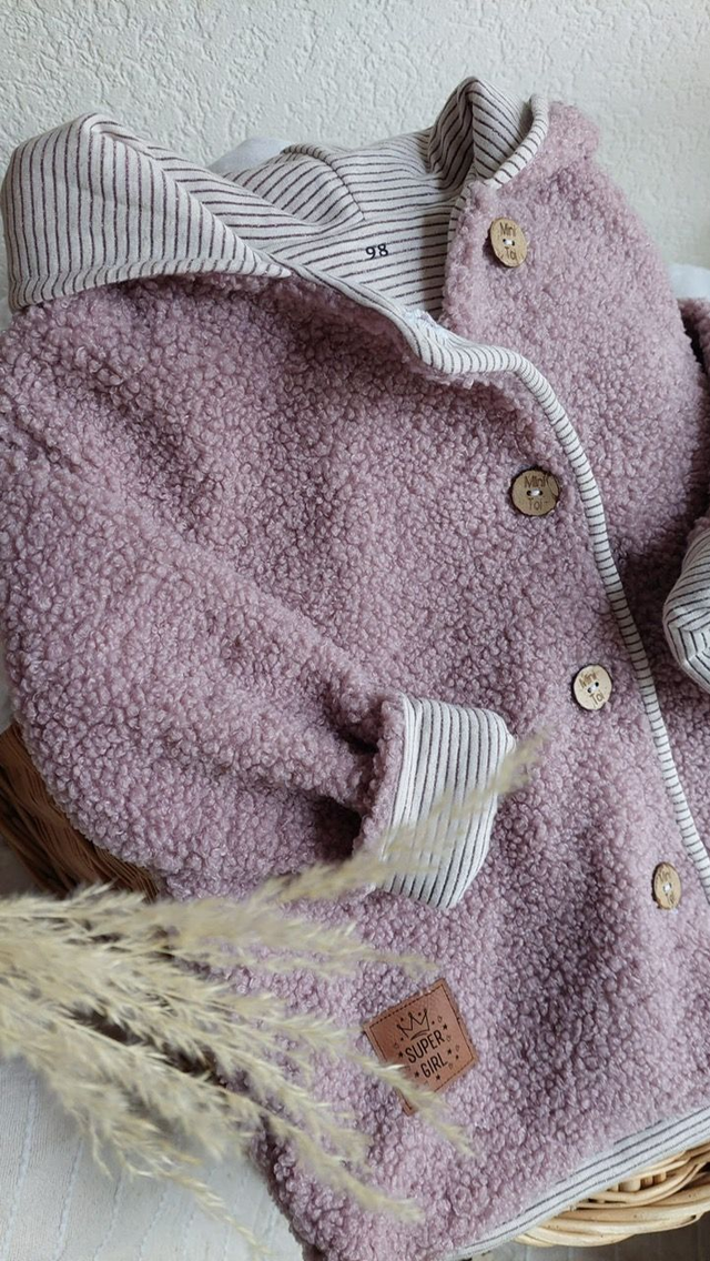 Confectionnée dans un tissu bouclettes super doux et souple et un jersey pour l'intérieur, cette petite veste est idéale pour l'entre saisons